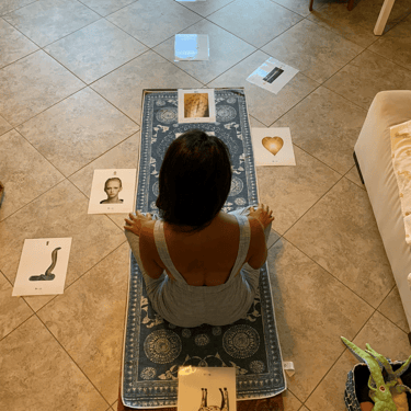 Every session begins by focusing on a complaint, challenge, or ailment that you wish to explore. Together, we create a layout—using symbolic cards, people, or imagery—that reveals what has been hidden, misplaced, cast aside, or left unresolved.
