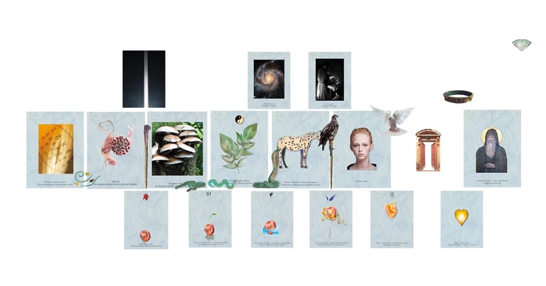 The Portal represents the doorway through which we surrender meaning, interpretation, and narrative to the Implicate Reality—God, ABBA, Allah, Yahweh, or the Sacred Source as one understands it. The five realm cards are placed vertically, from foundation (Material) upward to the Portal.